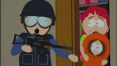 South Park fans got one of their first tastes of how timely the show could be when this episode referenced the Border Patrol raid on Elian Gonzalez's home that occurred earlier that week. In this case, Kenny was the stand-in for Elian.
