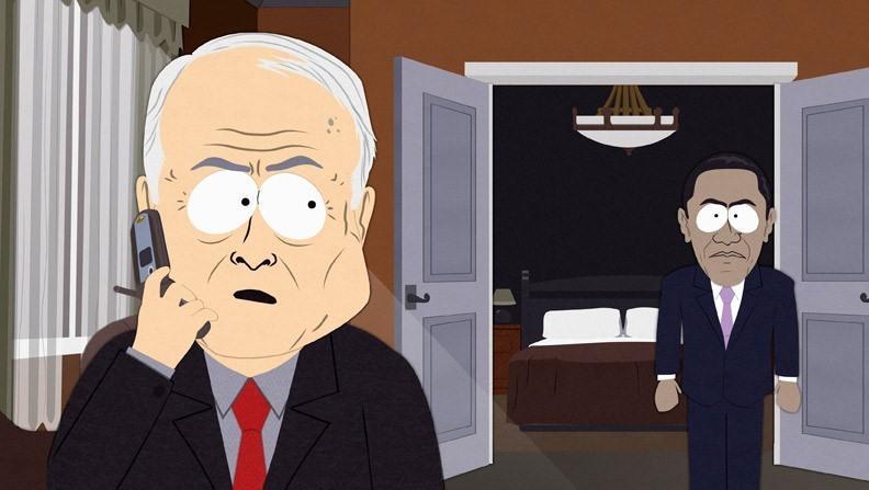 South Park lampooned the outcome of the 2008 Presidential Election the very next night, even including audio recorded from Barack Obama's victory speech. Here, Obama and John McCain were revealed to be members of an Ocean's Eleven-style criminal ring using the election as cover for a major heist.