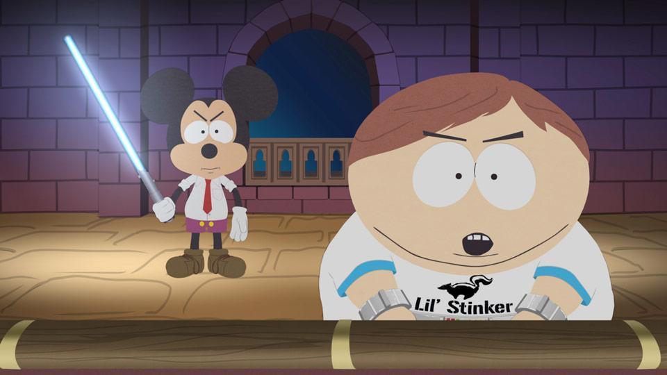 This episode suggested that Obama's 2012 re-election was part of a larger web of conspiracy involving China hiring Cartman to steal ballots and Mickey Mouse (fresh off Disney's acquisition of Lucasfilm) trying to tempt Cartman to the Dark Side. It was all very complicated, but fortunately Morgan Freeman was there to narrate the conflict.