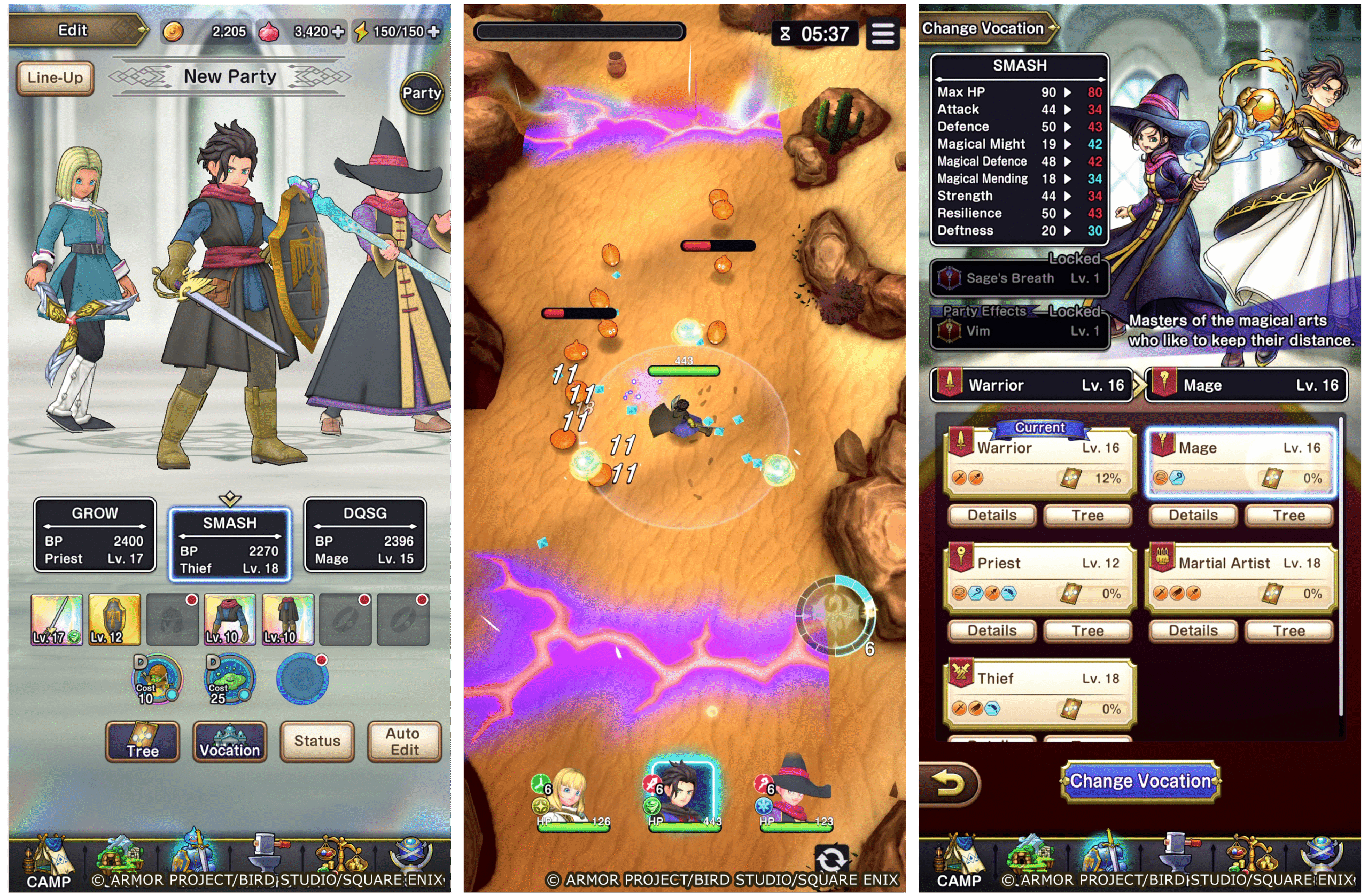 Fans of the series will recognize the familiar character art style, vocations, monsters, and music, but the gameplay is a departure from tradition. While the 11 mainline games in the franchise are turn-based RPGs, Dragon Quest Smash/Grow is an action-focused roguelite that’s been designed so it can be played with one hand on mobile devices. You lead a team of three heroes through hordes of enemies while choosing power-ups called Blessings through each run.