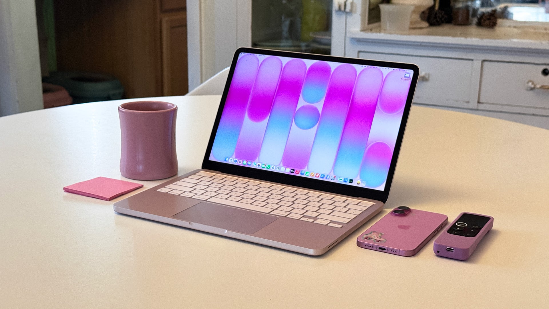 The colors are the big, obvious difference between the Neo and any other Mac laptop. I reviewed the Blush model, which is a pink laptop that verges on lavender in some light and silver in others. It also ships in Citrus, a yellow-green model that can also look silver in some light, Indigo, a dark blue, and Silver. I wish Apple had gone harder with the lighter shades; I love the saturated colors of recent iMacs, and had hoped that with the Neo, the company would throw the same amount of caution to the wind. But hey, it’s a start, and they do look great when the light hits them just right.