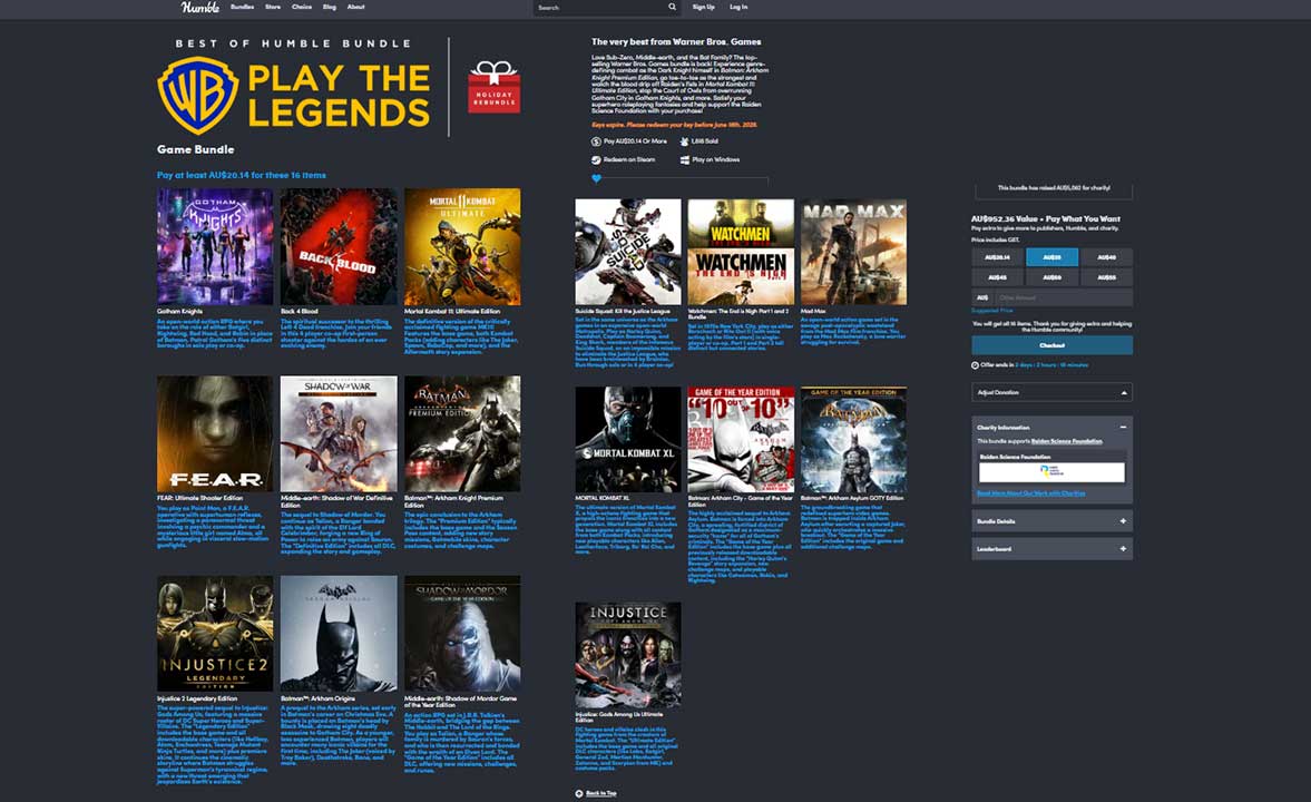 • Warner Bros 16 Item Mega Bndl (-98%) – A$20.10 A ridiculous value bundle stacked with recognisable franchises and genuine time sinks.