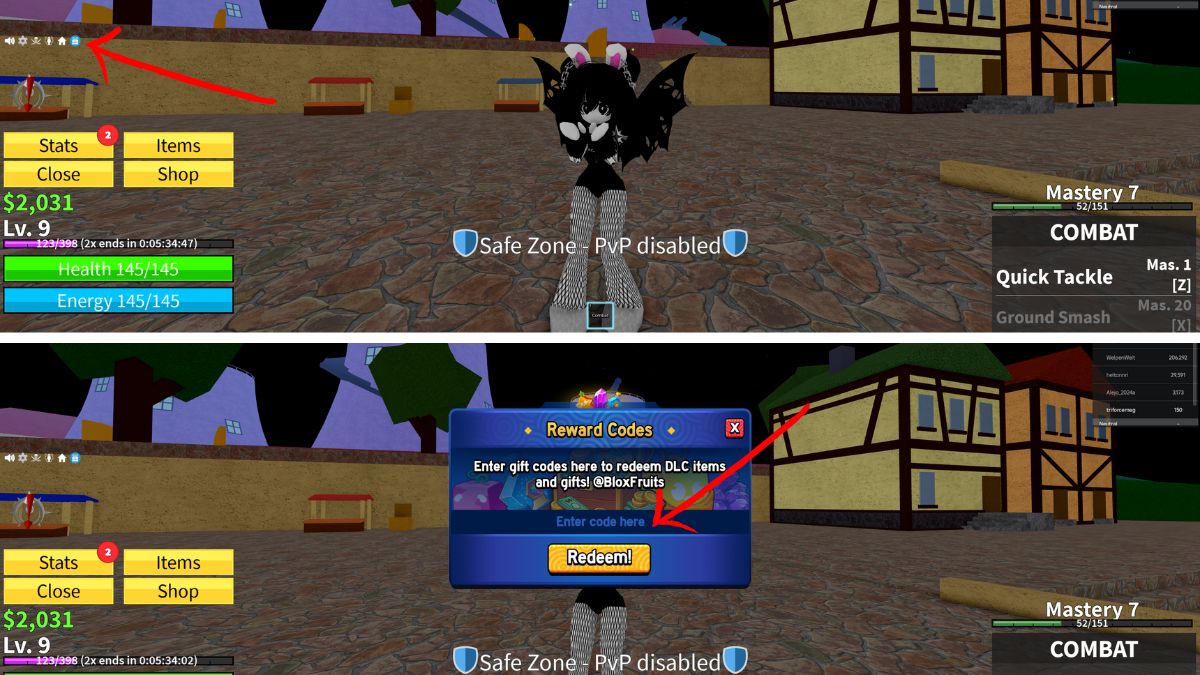 To redeem Blox Fruits codes and get free rewards in Roblox, follow the steps below: