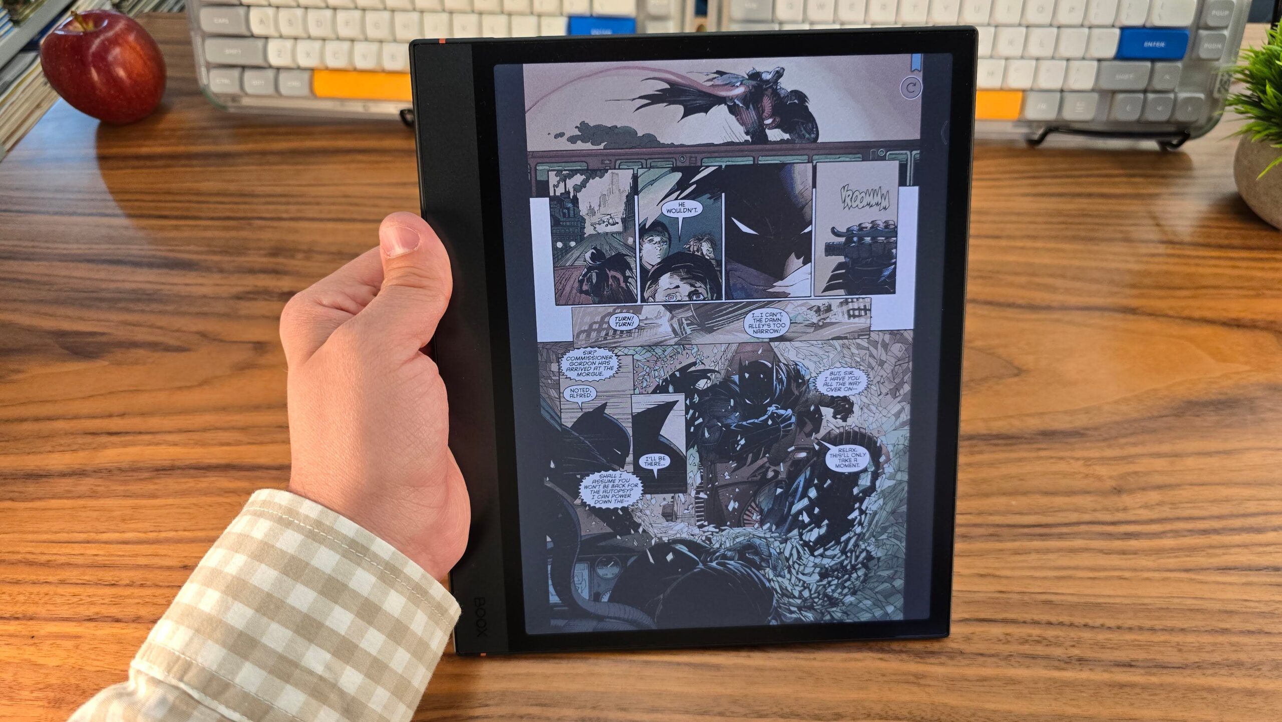 Reading through one of my collected editions of classic Tales from the Crypt, the difference was night and day. If normal e-ink is similar to reading a page in a paperback, reading a graphic novel is akin to the colors of a newspaper comic strip. On the Note Air 4C using the Vivid color setting, it’s a hair more saturated than Peanuts might be, but not much. Compared to black and white displays, however, it’s a big improvement.