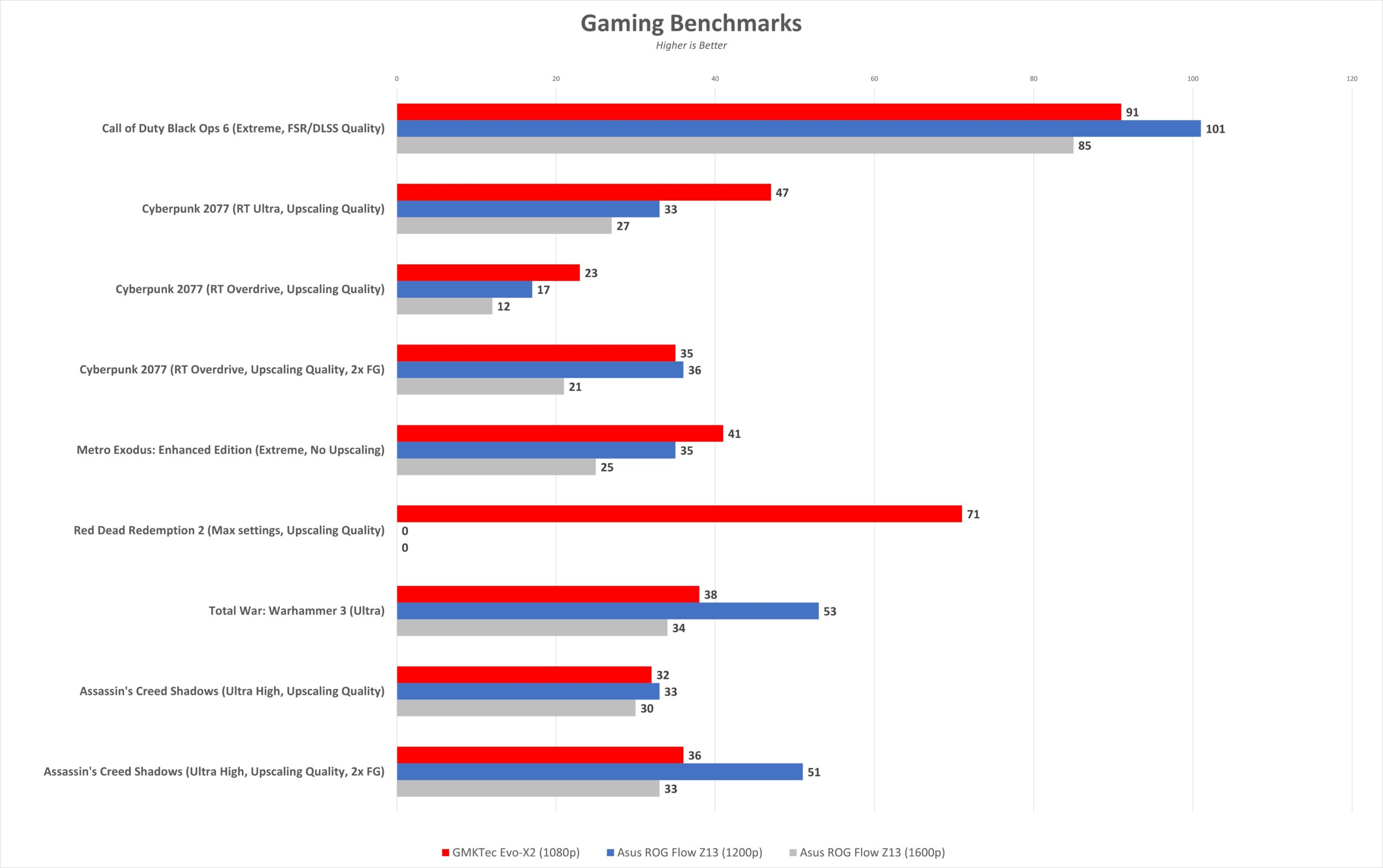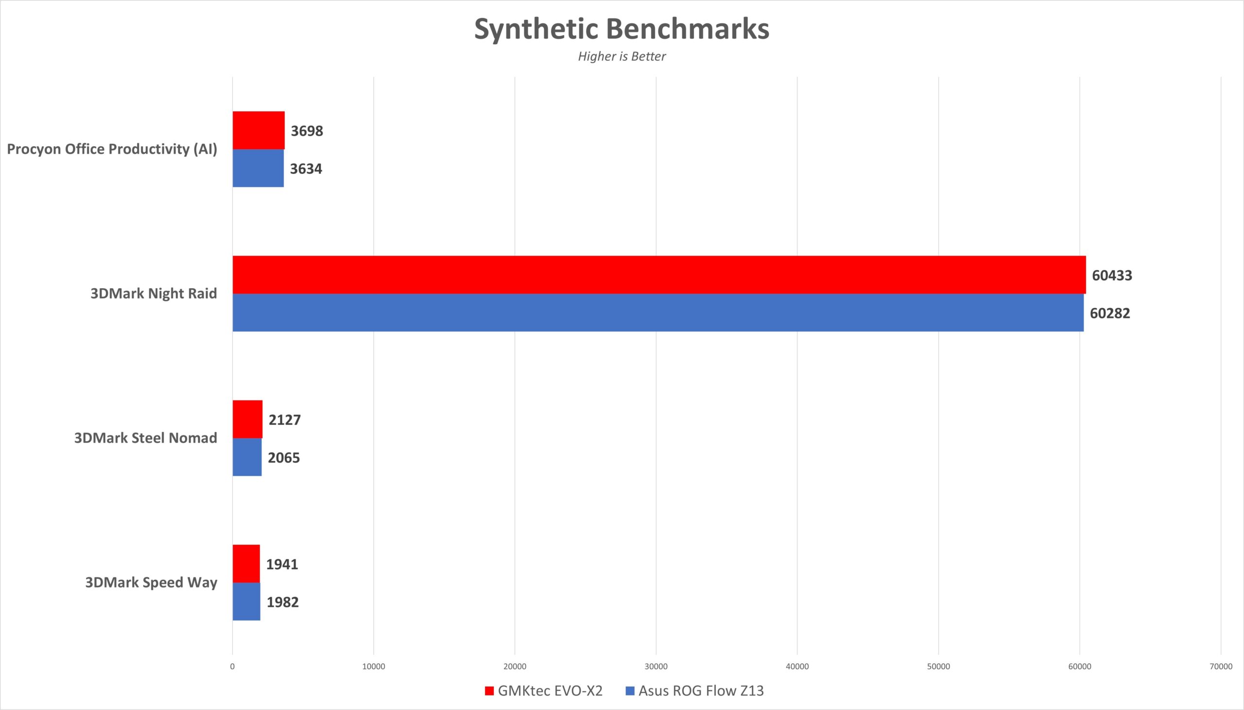 When it comes to gaming, the EVO-X2 is a mini-PC powerhouse. Performance still approximates an RTX 4060 laptop GPU and, while close to the Asus ROG Flow Z13 I reviewed with the same processor, did manage to stretch its legs a bit more.