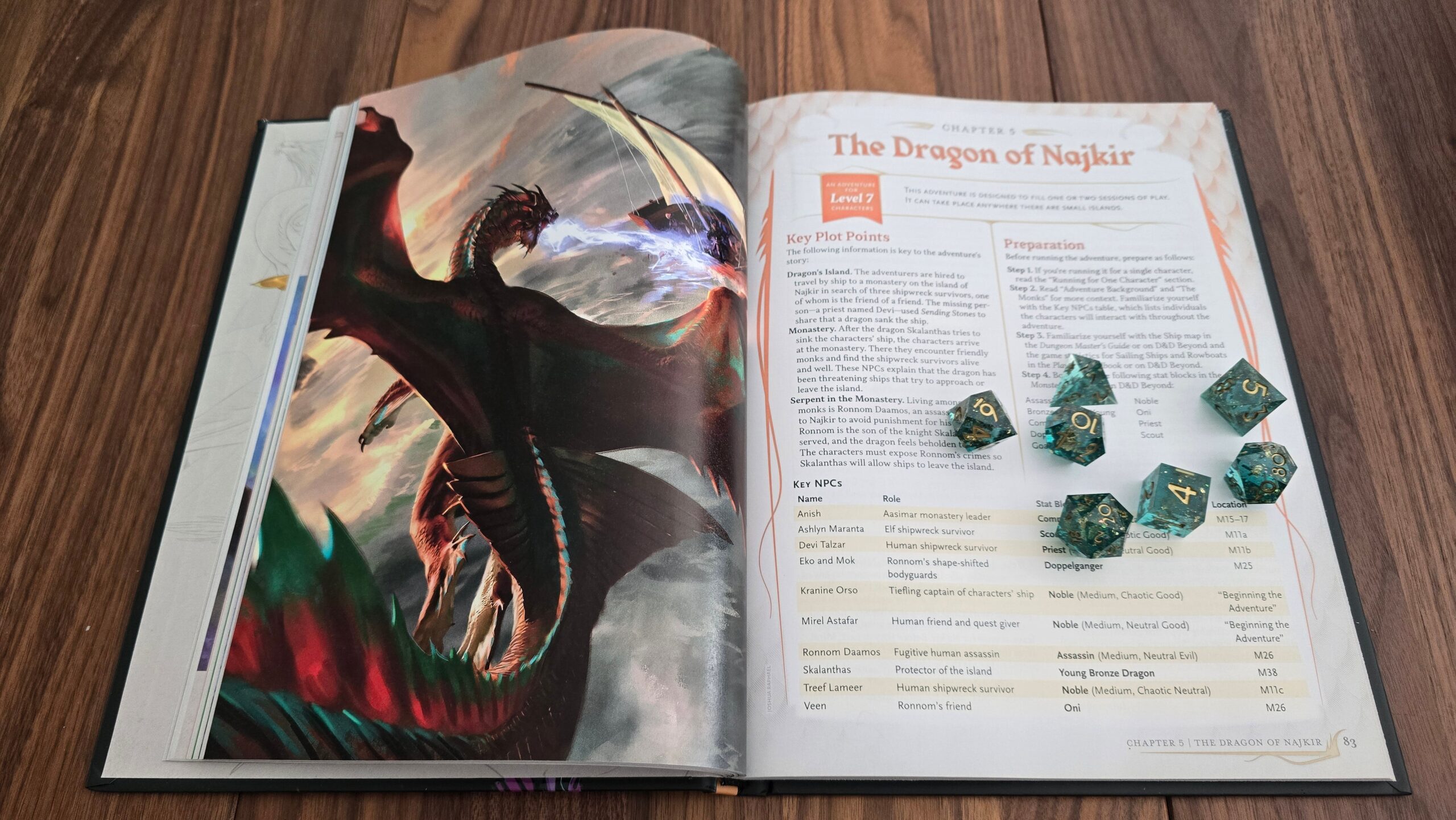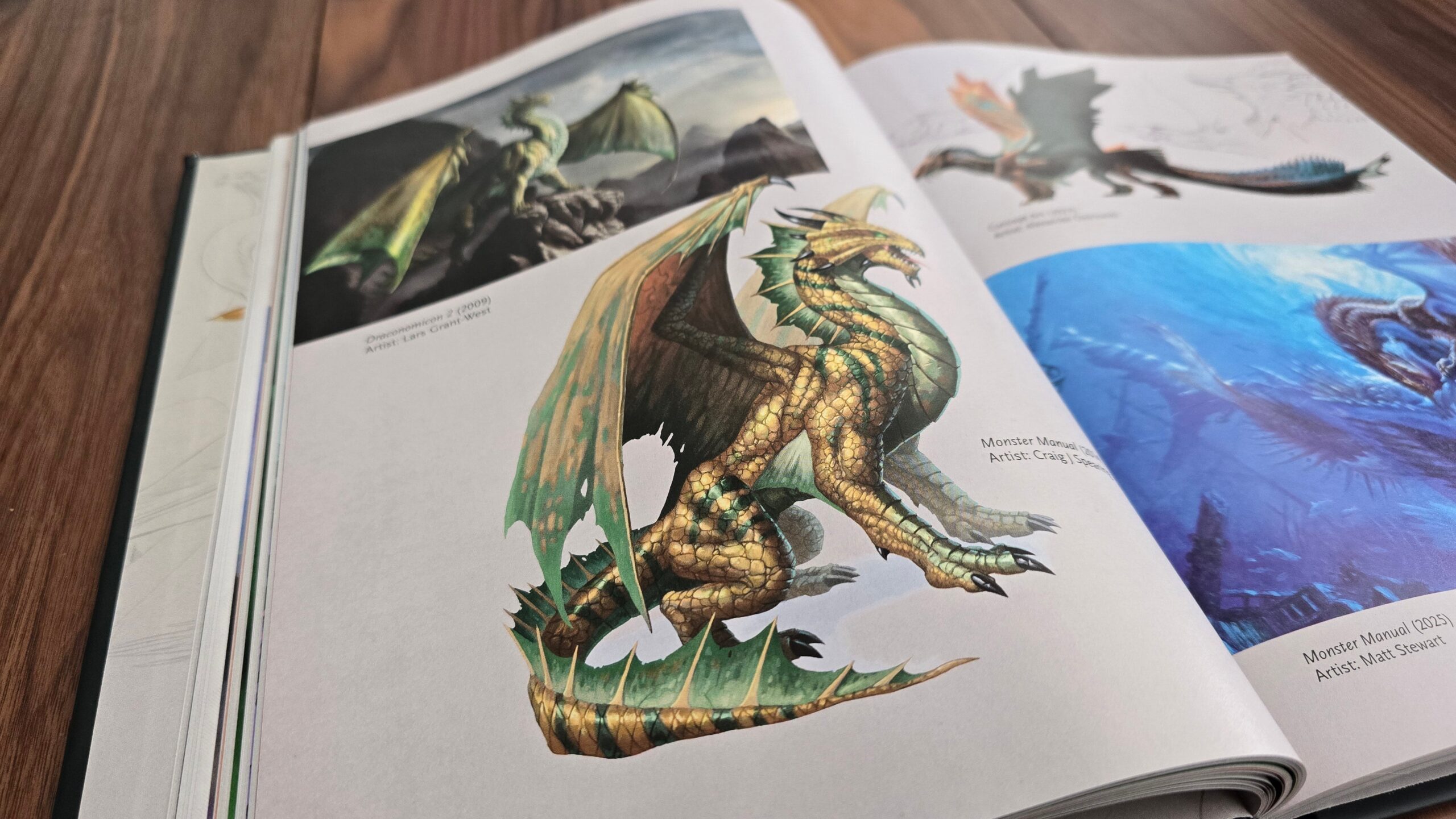 In addition to the quests, this book also showcases how the visuals and designs of each dragon have evolved over the course of Dungeons & Dragons' nearly five-decade-long lifespan. I appreciate the two-page spread of artwork, but when I heard that this book would also showcase the history of the dragon types, I expected more. I would have loved to see blurbs from Wizards’ designers on how, if any, the approach and gameplay design of the various types have shifted or changed over the years. How has Wizards approached its stat blocks, or despite “dragons” being in the franchise's name, why is the team as reserved in showcasing or highlighting them? Much of this art I could obtain simply by searching Google; give me the information or material that has been hoarded away in the Wizards’ vaults.