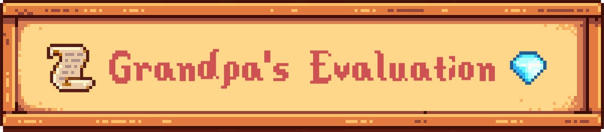 Barone: And I don't think you could reevaluate either. So it was like, a lot of people were upset because they felt like it was contrary to the comfortable atmosphere of Stardew Valley. So I did adjust that. I made Grandpa a lot less harsh and I made it so that you could re-summon him at any time to reevaluate the farm. And I don't regret that. I think it was the right move. I don't know what I was thinking.