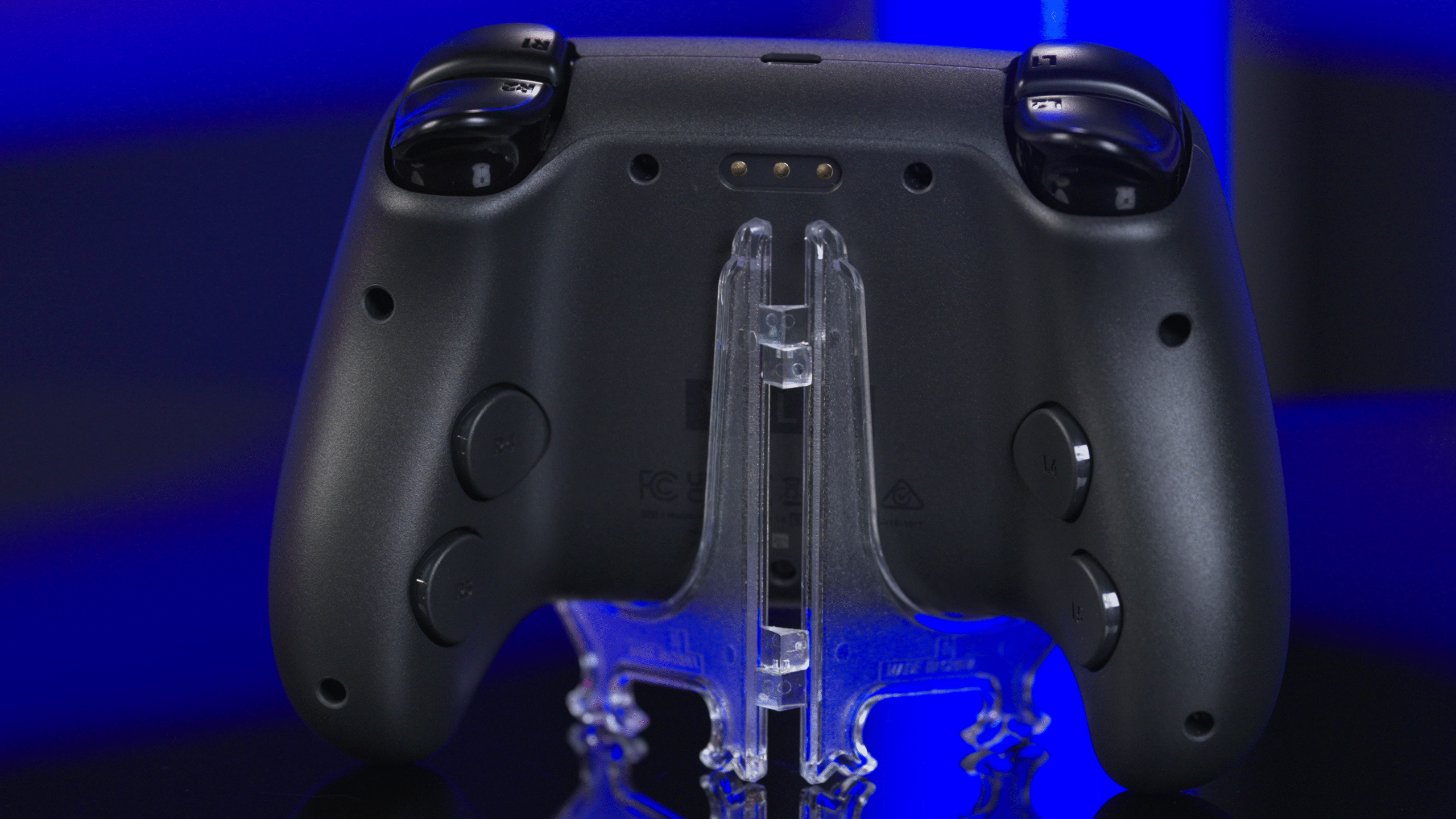 Around back are the rear buttons, which rest exactly under your middle and ring fingers when holding the controller. I found them easy and comfortable to press, though the bottom two – R5 and L5 – occasionally press by accident if I rest my hands on my leg in a certain way while holding the controller. Not a huge issue overall, and only a problem if you happen to cross your legs and rest your controller hands in the exact same way that I do, but something to be aware of nonetheless.