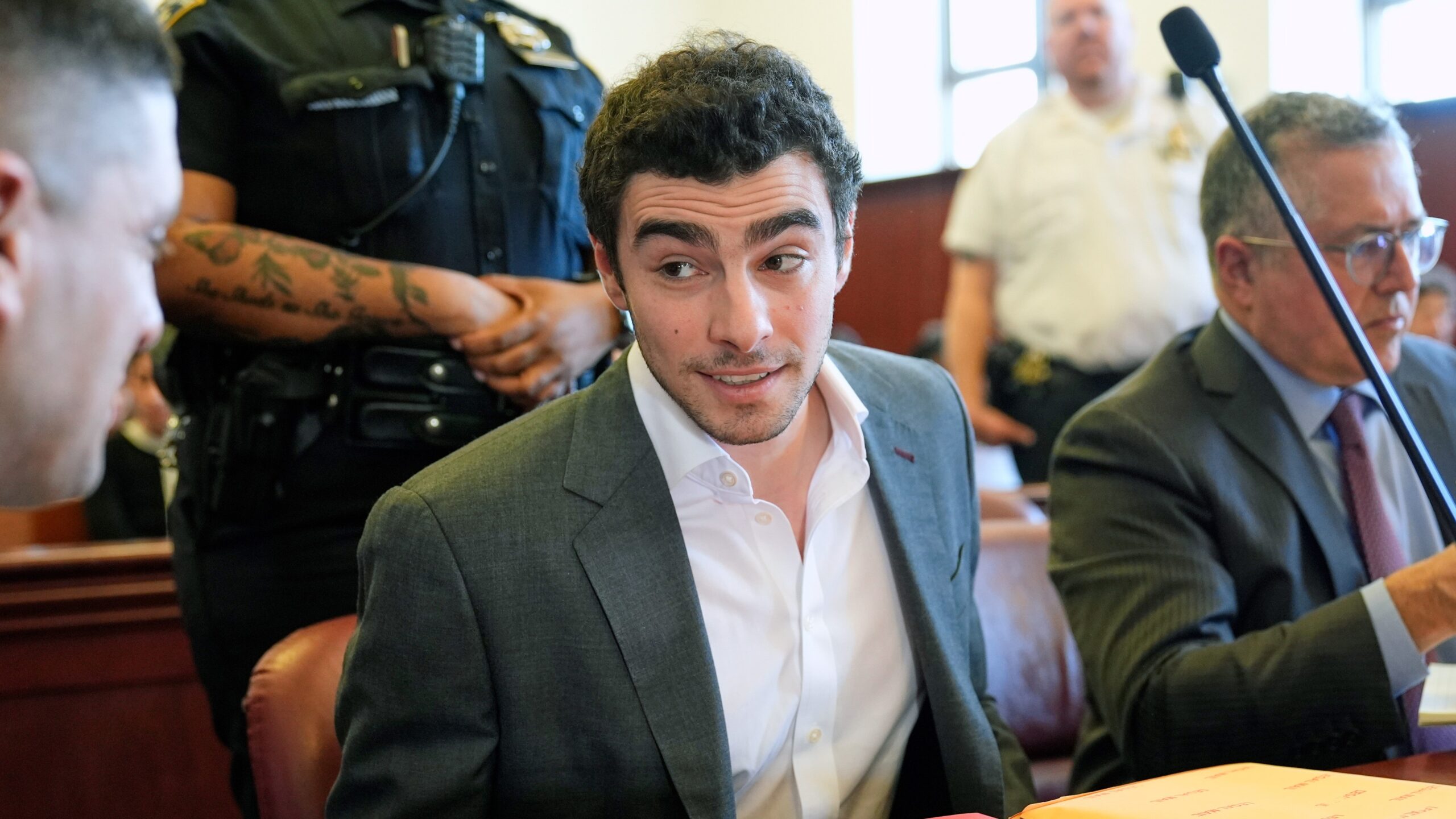 "In recent American history?!" Day responds, clearly aware of what he's being asked to reference. "Ah, well, me first of all, number one" he responds, "Luigi Mangione, number two."