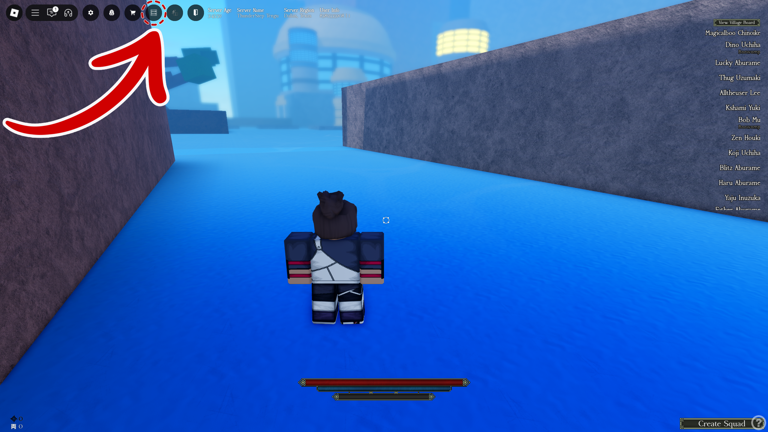 - Look in the top left corner for the icons that will open your inventory, the shop, server list, etc.