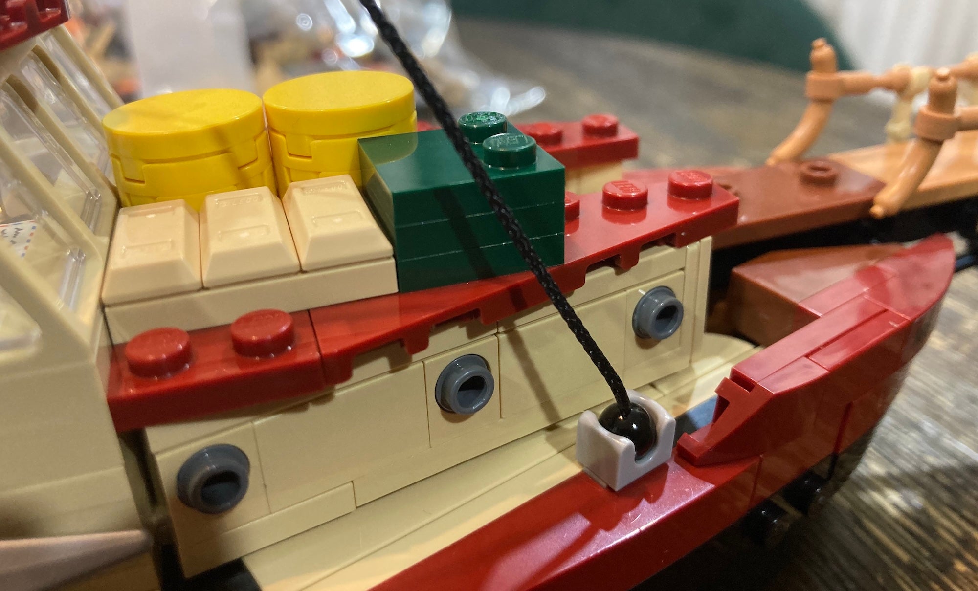 The LEGO Jaws set is three builds in one. First you build the Orca, Quint's dilapidated, battle-tested boat. Its color scheme, dark maroon and black, is the same as that of the LEGO Titanic – an inauspicious homage to doomed sea vessels that challenged nature and lost.