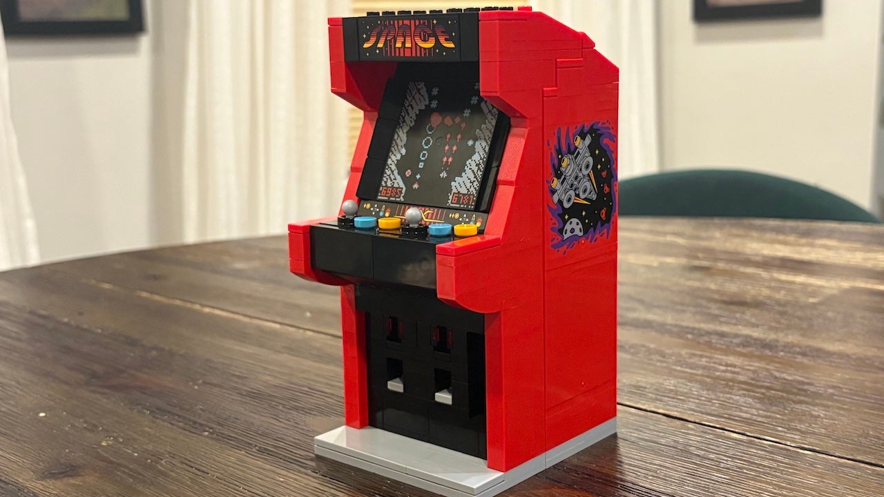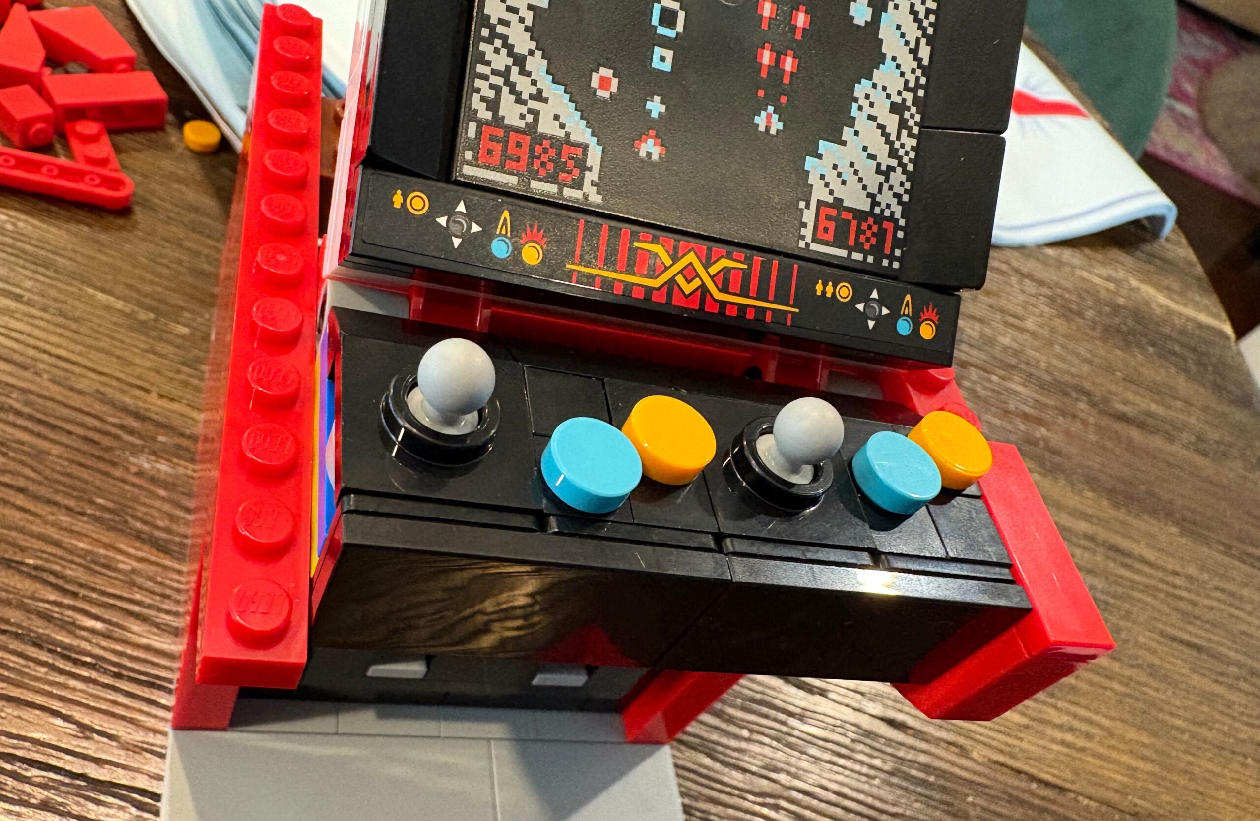 Building the new LEGO Arcade Machine is an intimate, rewarding experience. On its exterior, this set is a classic, standup coin-operated arcade cabinet, with colorful decals on its sides, an air vent on its back, and a joystick/button interface for two players on its dashboard. The game is titled "Space," an intentionally generic title meant to encapsulate Galaga, Space Invaders, and other titles from the early '80s space shooter genre.